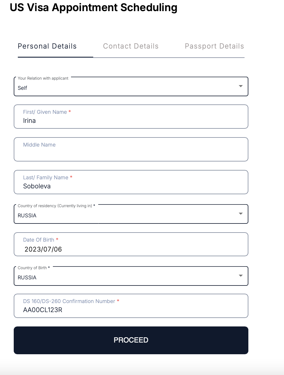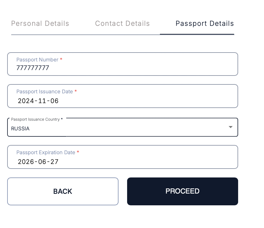 Далее данные паспорта и каждый раз чтобы продолжить нажимаете Proceed